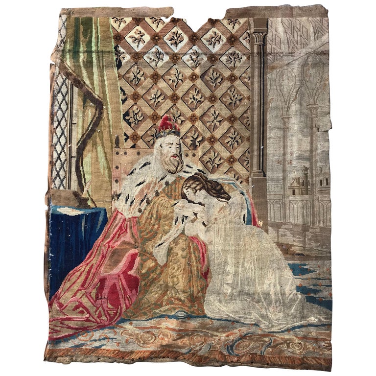 Antique French Tapestry / Antique French Aubusson Tapestry - Antique tapestry was designed to decorate a tall narrow space, probably between two windows, and is ideal for today's.