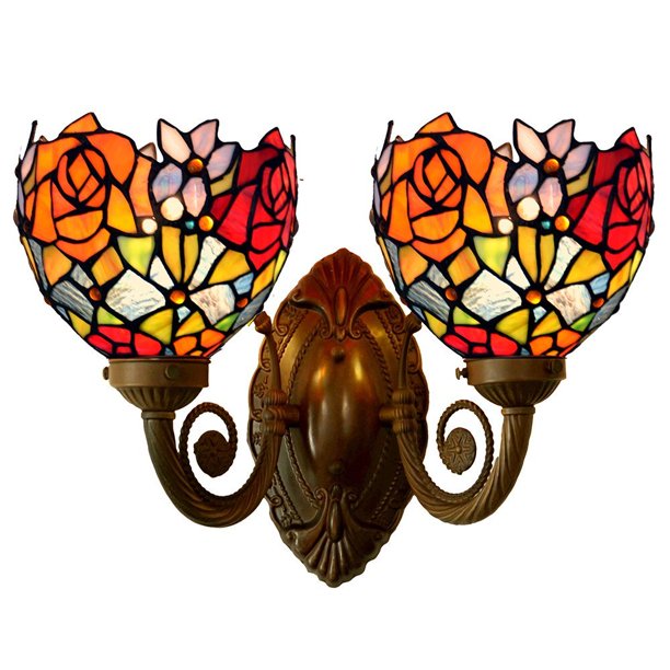 The jacqueline fancy wall sconce is a delicate accent in most any room, yet its function is essential. Item is a unique, handcrafted work of art. Tiffany style floral wall sconce stained glass accent wall lamp in beige for staircase usd $47.18usd $100.38 40% off. Art glass panels in neutral tones are complemented by blue glass pieces. Choose from contactless same day delivery, drive up and more.