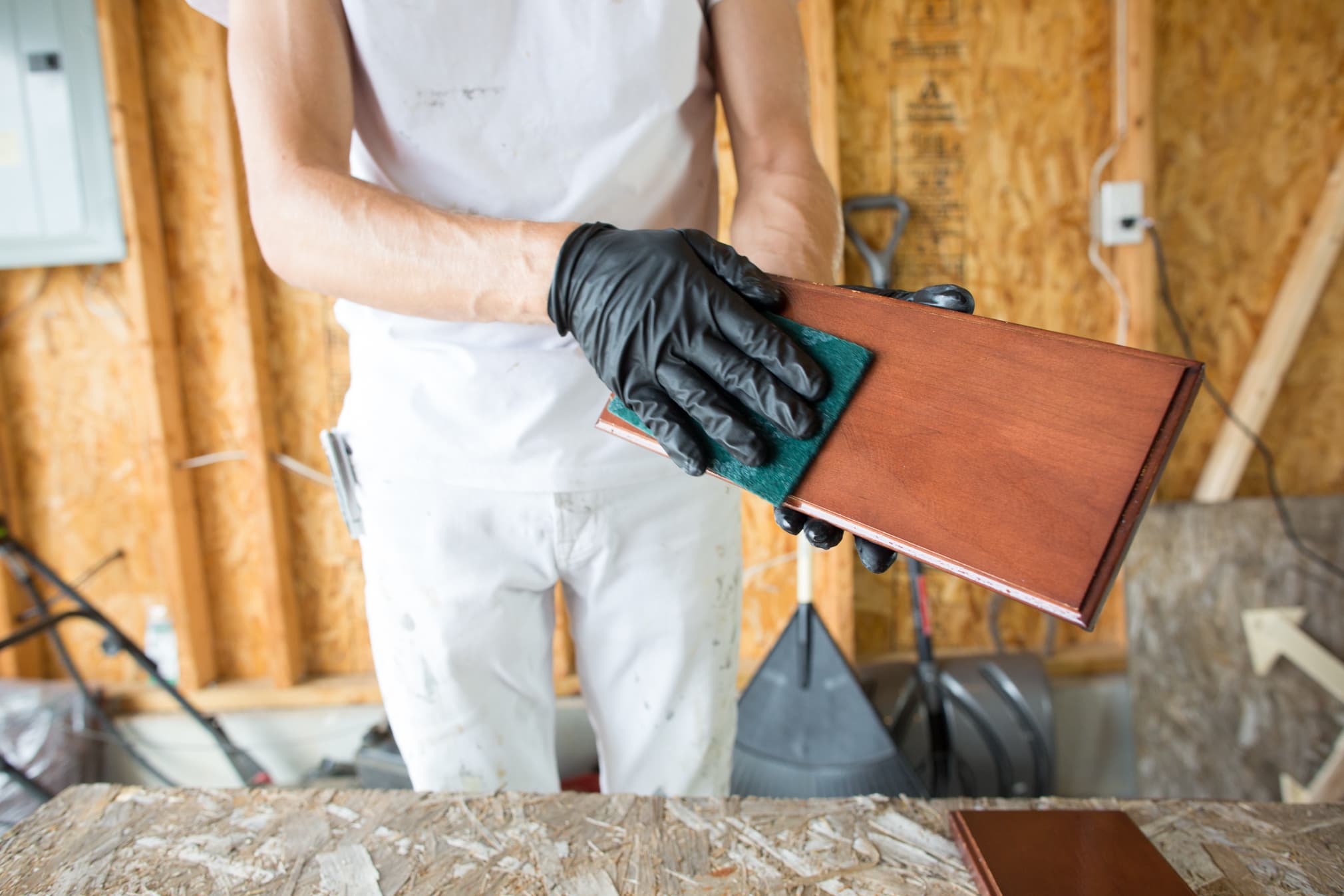 I had already used a liquid sander/deglosser to avoid having to sand the cabinets, so all of the cabinets were ready for primer.