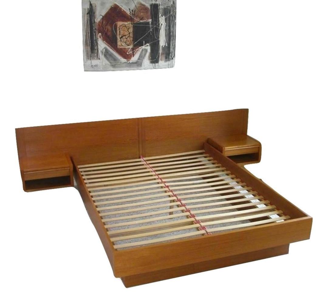 Modern Bed With Attached Nightstands / Queen Danish Modern Teak Platform Bed + Attached Floating ... - It includes a bed and two nightstands, all made with solid wood.